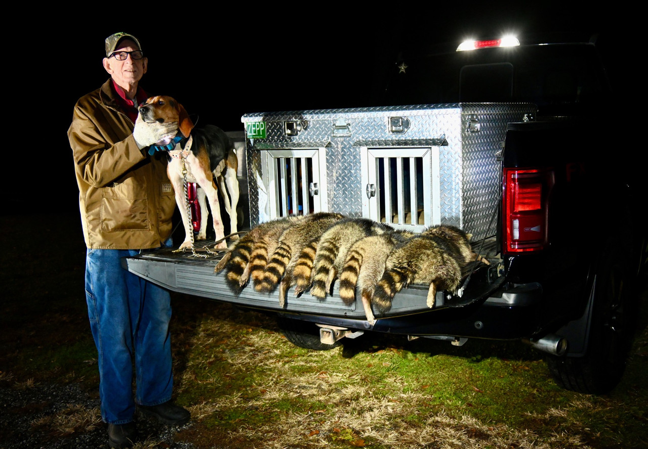 My 91 year old hunting partner Herm Wogatzke and Lil, last night, 11/13/25. We treed 15 and had to see that many more sitting up, just a magical night. His little Walker female just turned one a few months ago and did a GREAT job. Herm's a big fan of his flannel lined Deluxe Classic Coat and Zepp Dog Box available at www.MarkZepp.com