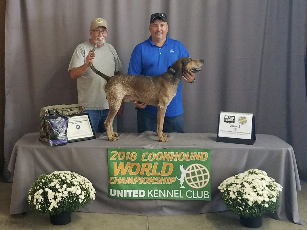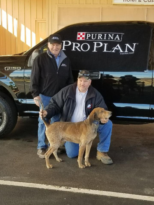 Thanks David and Josh, it has been a lot of fun campaigning this fine hound, he has proven himself in both PKC AND UKC with wins all over the country. I have had the pleasure of hunting with some of his young pups and have been impressed. 2nd trip to final 100 in past 3 years. Truck hunts, English Days wins both UKC AND PKC.. to many wins to list. I have references from of the top English men and competition hunters if anyone needs to have more proof. SAMPSON is simply this HARD HUNTING, DEEP ALONE AND WITH THE MEAT COONHOUND, WITHOUT A MEAN HAIR ON HIM, THE RIGHT KIND FOR ANY TRUE COMPETITOR.. THANKS AGAIN EVERYONE..