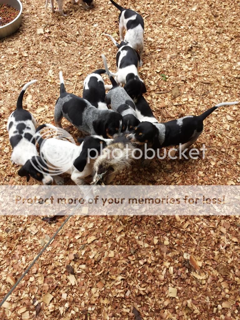 At 5 weeks these pups were already fired up about a coon hide. These pups have been worked with continuously and should make some awesome hounds.