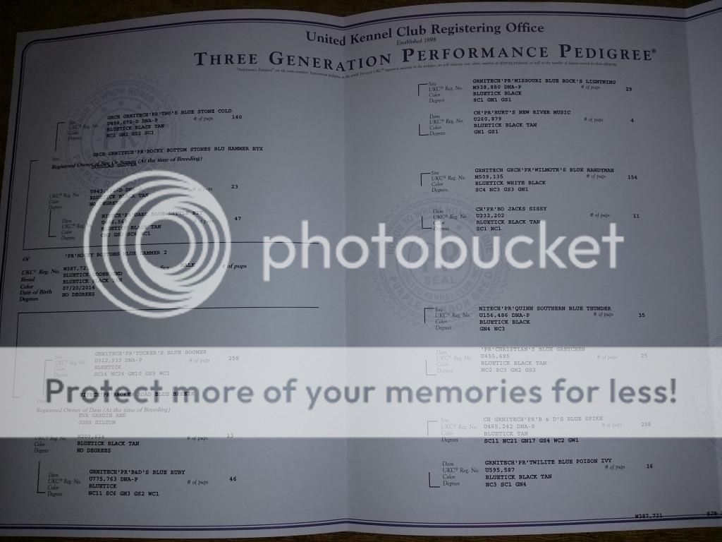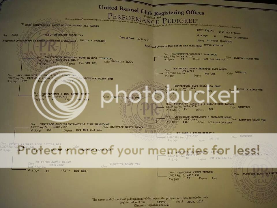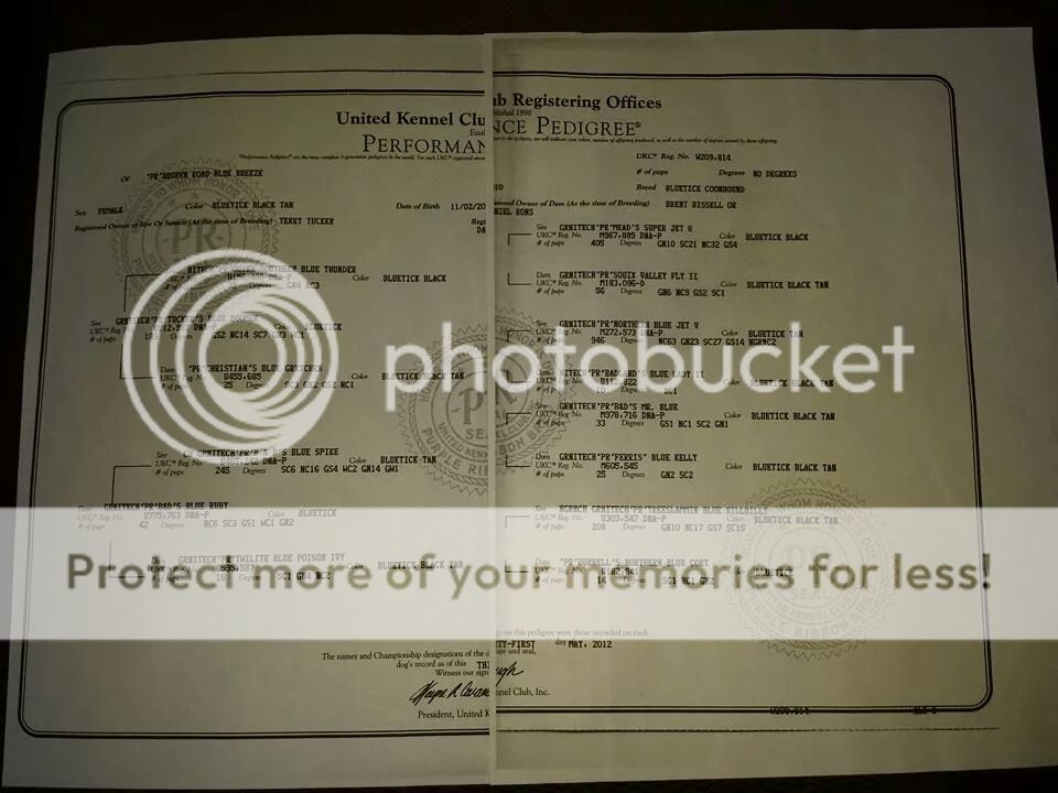 Here's a copy of one of the pups permanent papers that has already come back to show that performance has been paid on them.
