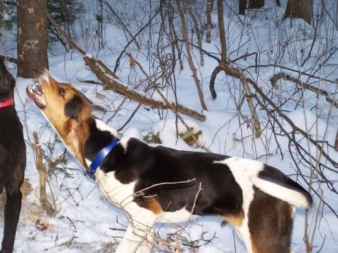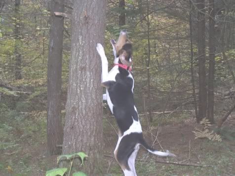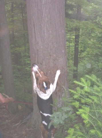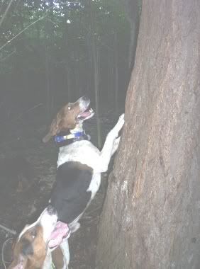 PR IRWIN'S TREESOLID SAM (FULL BROTHER TO OJO) thats sam and ojo treed on nasty sow bear in vt. summer 06.