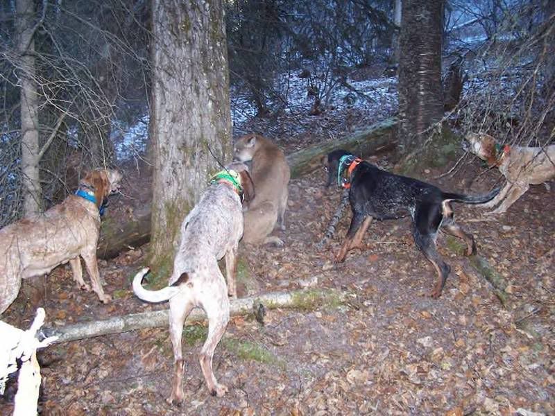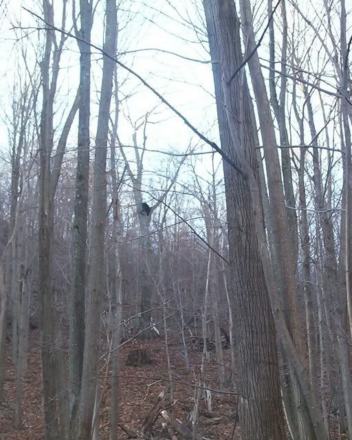 This was one BIG bear, that we wished we'd have tagged but didn't. He ran some ways, the treed not les than 5 feet off a road. I took this picture standing on the road Biut we had a split race this day. Ended up treeing 4 bear this day. Our reacord for trees in one day this season.