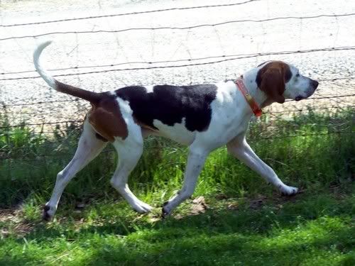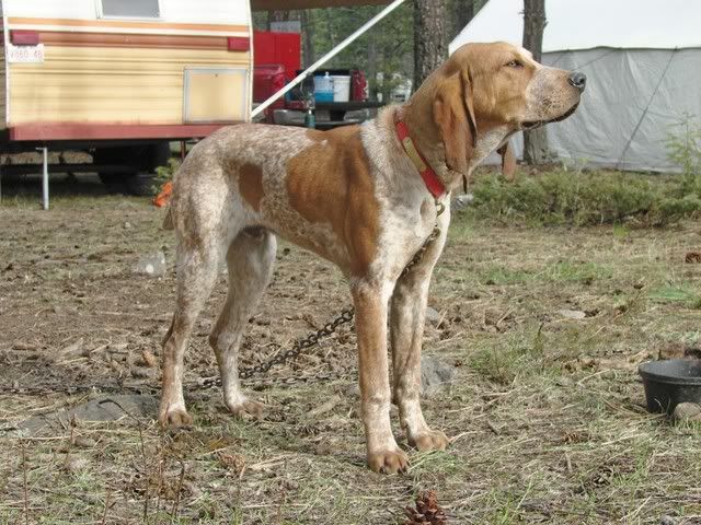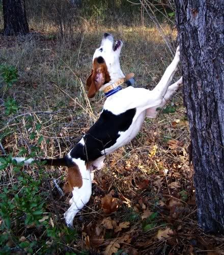 This is a picture of the Most Athletic hound I have owned. He has always been a super fast track dog that make catching bears look easy.