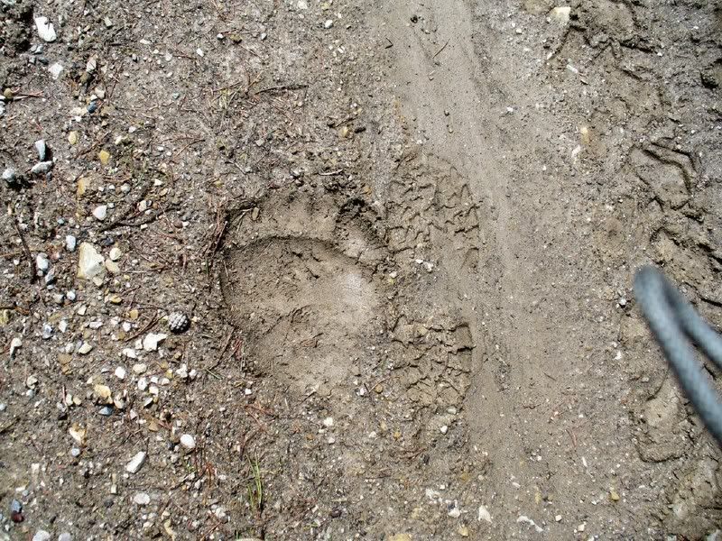 Brian was out driving in the mountains and found the big grizzly track and took a picture of it. He had no intentions of running it, and he couldn't legally anyway.
