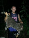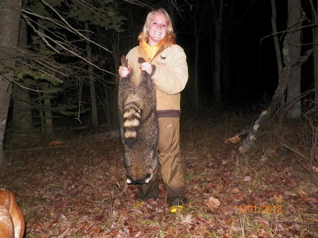 So far I killed a 31 pounder this year. My daughter went with me one night and she knocked out a 29 lb boar after a beautiful run with my English. These coon were brought back and weighed on a scale. This is my first year coon hunting. I didn't know we had this many big coon up here. So far we've killed twenty five coon and the average is around 24 lbs.