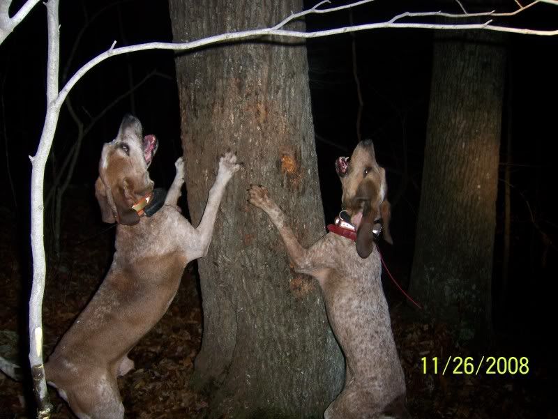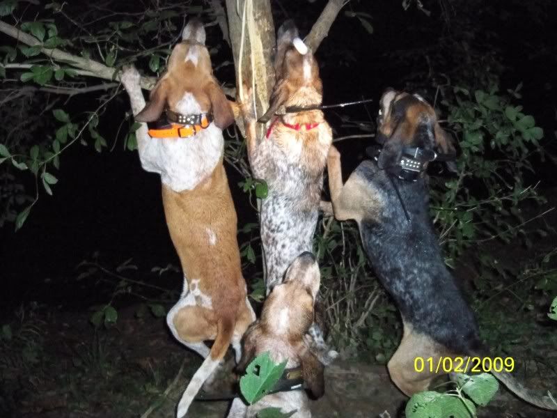 coon treeing. little Ink, Henry, Bruzzer, all owned by pleasure hunters.