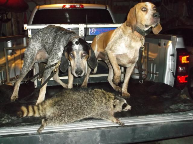 Lightning was flashing all around me wind whipping and rain and hail falling. I spotted eyes just once in the top of the big hemlock and fired and heard that familiar plunk. It was so windy never heard the coon hit the ground, nice big boar. Dogs wooled him good I grabbed dogs and headed for the long walk back to the truck soaked to the skin.