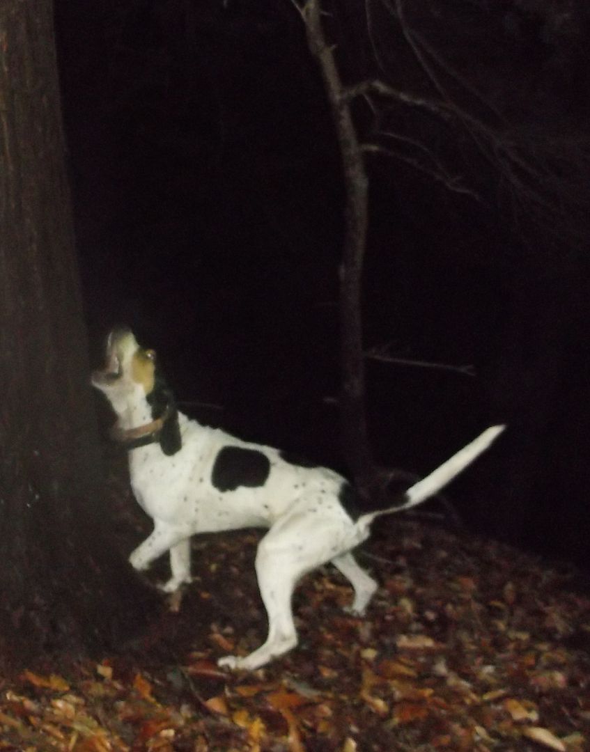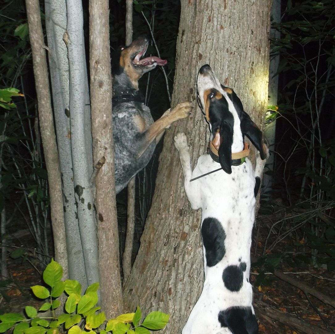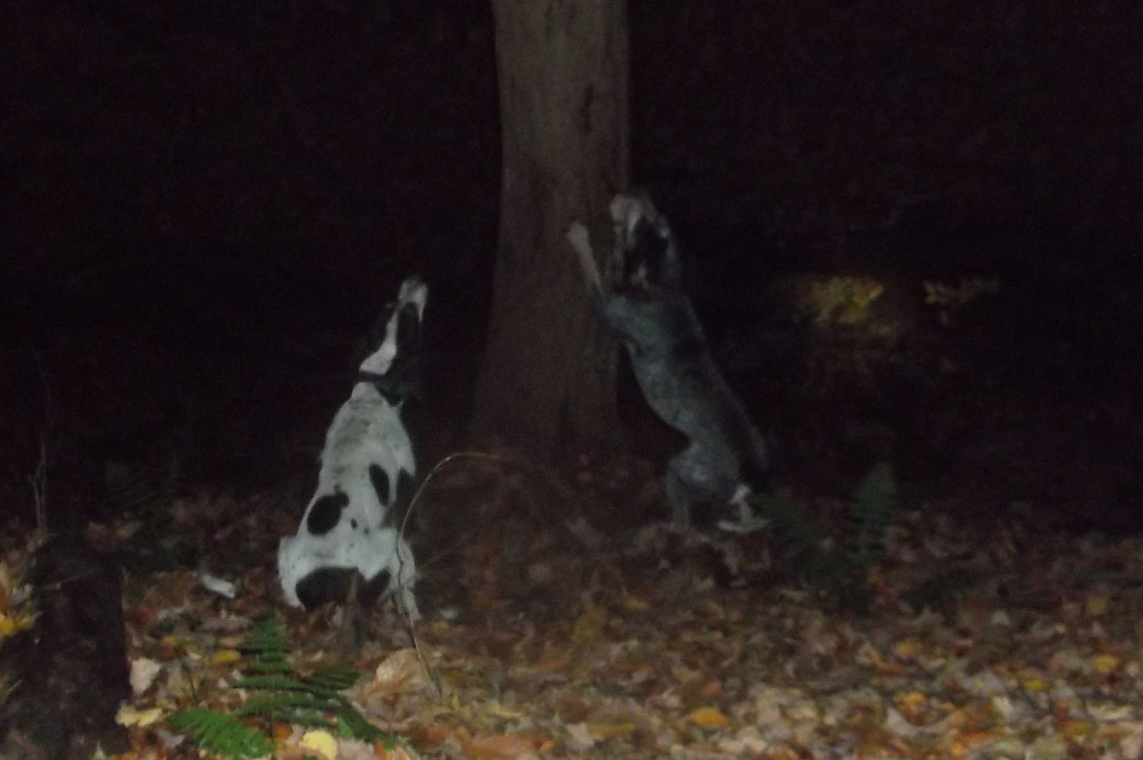 I must say in all my years of starting young dogs I have NEVER EVER had a pup open and tree hard on it's first trip to the woods. Some show interest and go with the older dogs and maybe bark a time or two at the tree out of excitement but never like this little Blubelle showed me on this night!