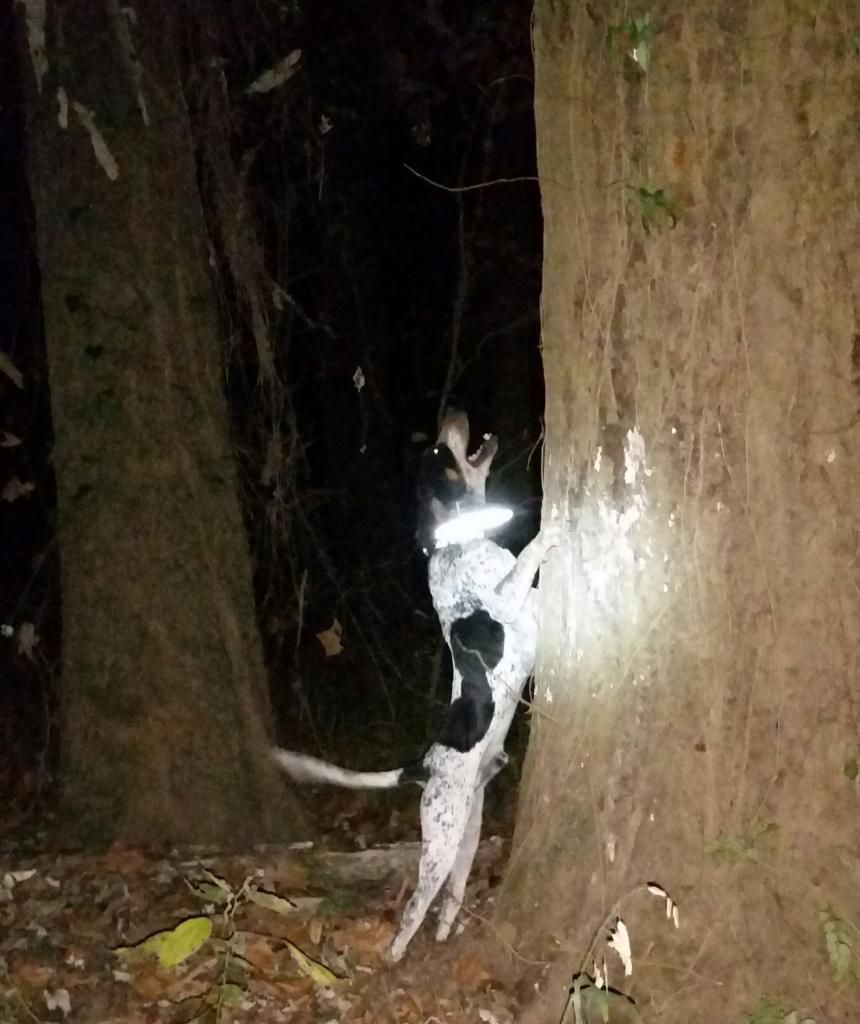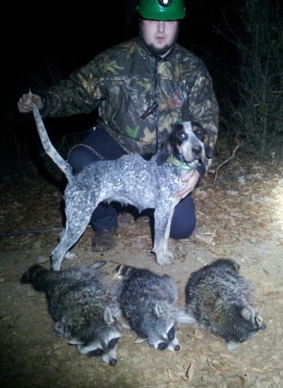 Yes sir, Tapp likes to be by his self with a coon.Nothing flashy but having the meat is worth more to me than flash. Tapp is a excellent lay up hound with great tree manners and is a Coondog.