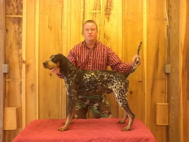My brother still has a dark blue littermate brother to Tiny that he uses for keeping coons out of his chickens. Good Luck with this cross, I really like to looks of your WildFire Hound. You should get some very well built, coon treeing rascals out of that litter.
